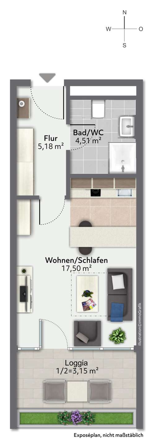 Die Wohnung eignet sich ideal für Singles, Eigennutzer oder Pendler und stellt zugleich eine attraktive Kapitalanlage dar.