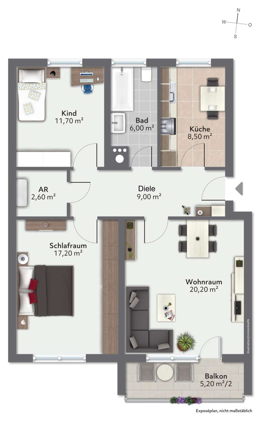Die Wohnung bietet eine solide Basis für individuelle Modernisierungsmaßnahmen und eignet sich ideal für Eigennutzer.