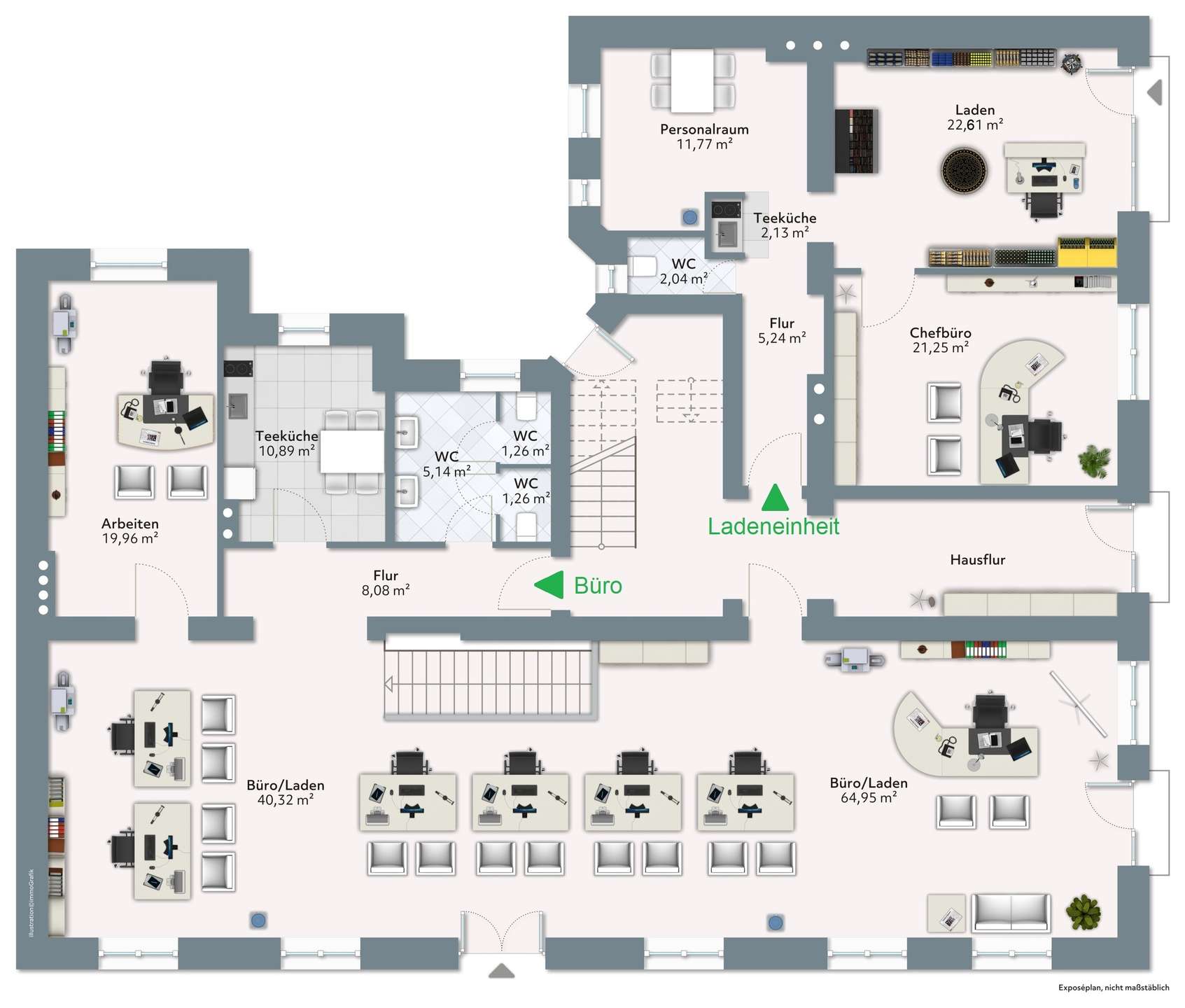 Anlagepaket: vermieteter Laden und Büro samt Nebenflächen in Toplage