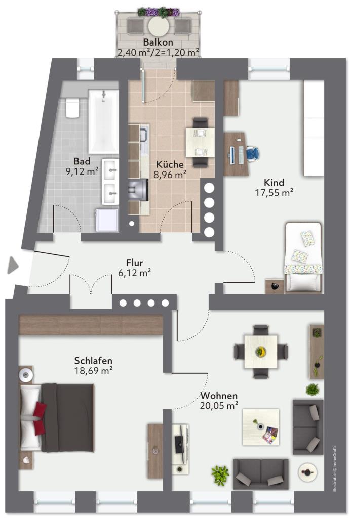 - Kaltmieteinnahme: ca. EUR 17.400,- p.a.