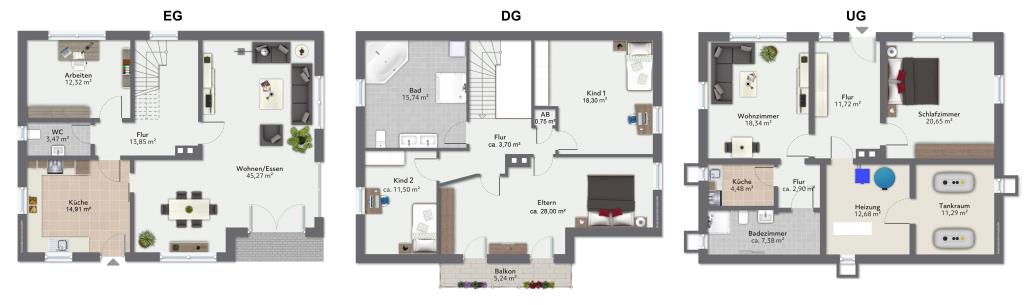 Das Dachgeschoss besteht aus drei Schlafzimmern, dem Flur und einem geräumigen "Wohlfühlbad" samt Dusche und Eckbadewanne. Vom Elternschlafzimmer aus betreten. Sie den Balkon auf der Südseite.