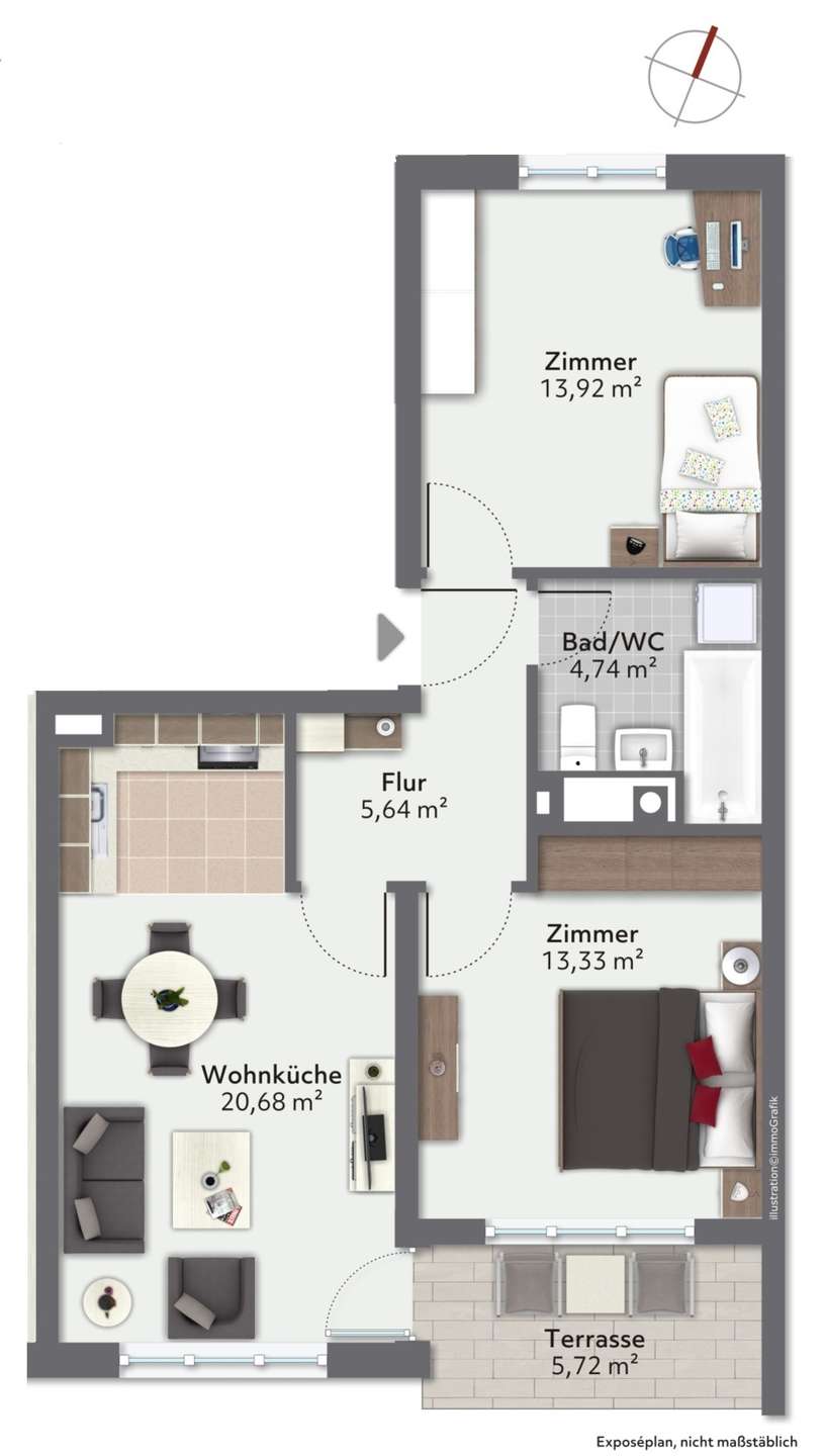 Aus Rücksicht auf die Privatsphäre der Mieter veröffentlichen wir keine Innenaufnahmen und bieten keinen virtuellen Rundgang an.