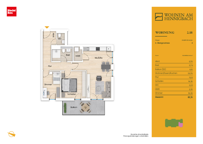 Wohnen am Hennigbach - familiär, ländlich, stadtnahDas Projekt AM HENNIGBACH entsteht in Bestlage von Markt Schwaben, östlich von München. Das zeitlos elegant gestaltete Mehrfamilienhaus mit 28 modernen 2- bis 4-Zimmer-Wohnungen und Wohnflächen von ca. 55 bis ca. 120 m² erfüllt die Anforderungen an einen klimafreundlichen Neubau (Effizienzhaus-Stufe 40) und bietet damit hervorragende Finanzierungskonditionen.