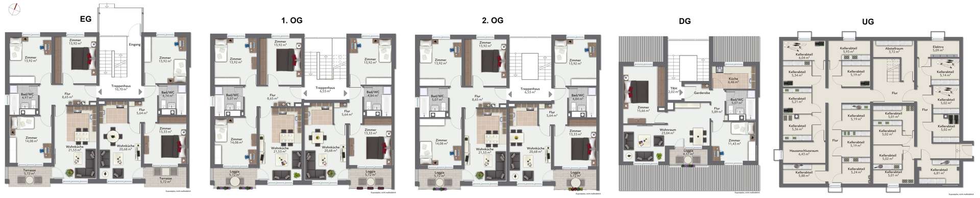 Die Immobilie befindet sich in einer ruhigen Nachbarschaft mit viel Grün und aufgelockerter Bebauung. Sie umfasst sieben Eigentumswohnungen, jeweils mit zugeordnetem Tiefgaragen-Einzelstellplatz. Die 3- bis 4-Zimmer-Wohnungen überzeugen durch praktische und funktionale Grundrisse und bieten Wohnflächen zwischen ca. 60 m² und ca. 78 m².