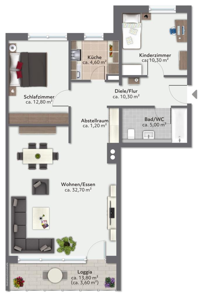 Toplage im Brunnenviertel! 3-Zimmer-Wohnung mit Südloggia & 2 TG-Stellplätze