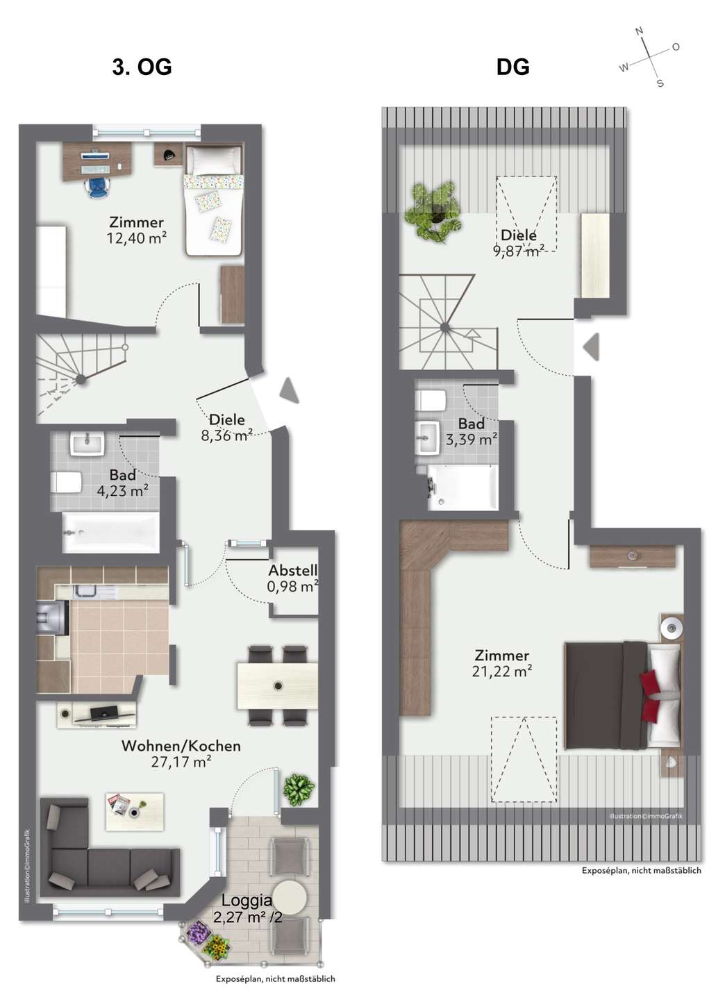 - 3. und 4. Obergeschoss (4. OG = Dachgeschoss)