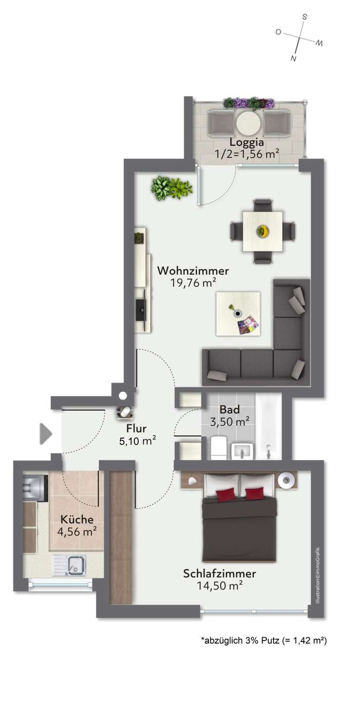 Das Immobilienangebot wird durch ein eigenes Kellerabteil, die gemeinschaftliche Nutzung von Fahrradkeller und Waschküche sowie einen oberirdischen Stellplatz (Sondernutzungsrecht) ideal ergänzt.